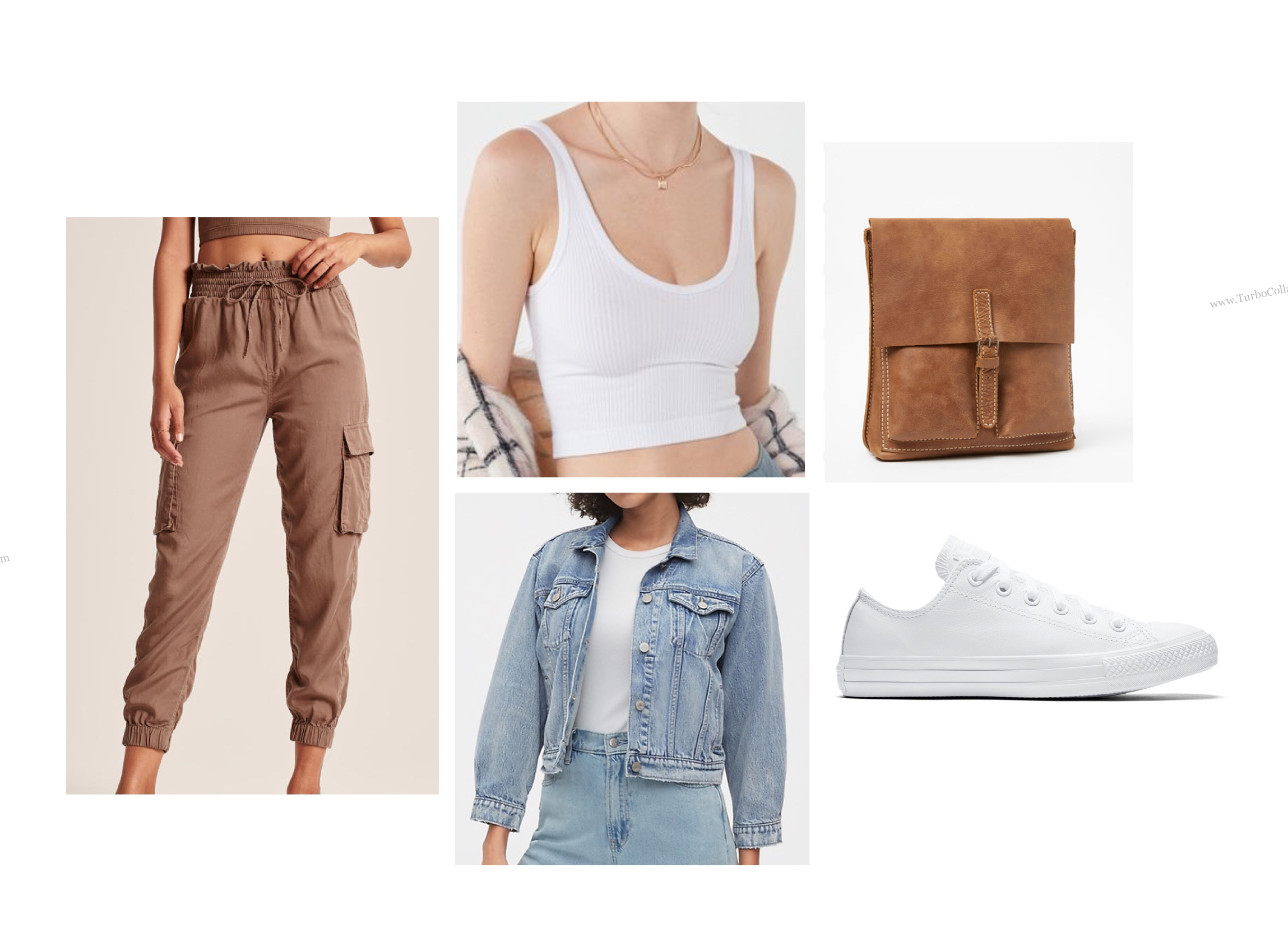 The first look that I put together for Abbey was a school day look. She is a university student at McMaster therefore comfort is always key. I wanted to make sure that this look was both comfy and cute at the same time. It’s easy to wear leggings and a sweatshirt everyday, I am guilty of the same thing but I think its fun to switch it up a bit. I first found these amazing cargo joggers that I thought were a fun take on a traditional sweatpant. I thought they were so Abbey’s style. I then thought to add this cropped jean jacket that has a 90’s fit. Abbey has a Roots backpack that she always wears so I wanted to incorporate that into this look. The good thing with this one is its big enough to fit textbooks and a laptop. Overall this is the perfect comfy but cute school look.