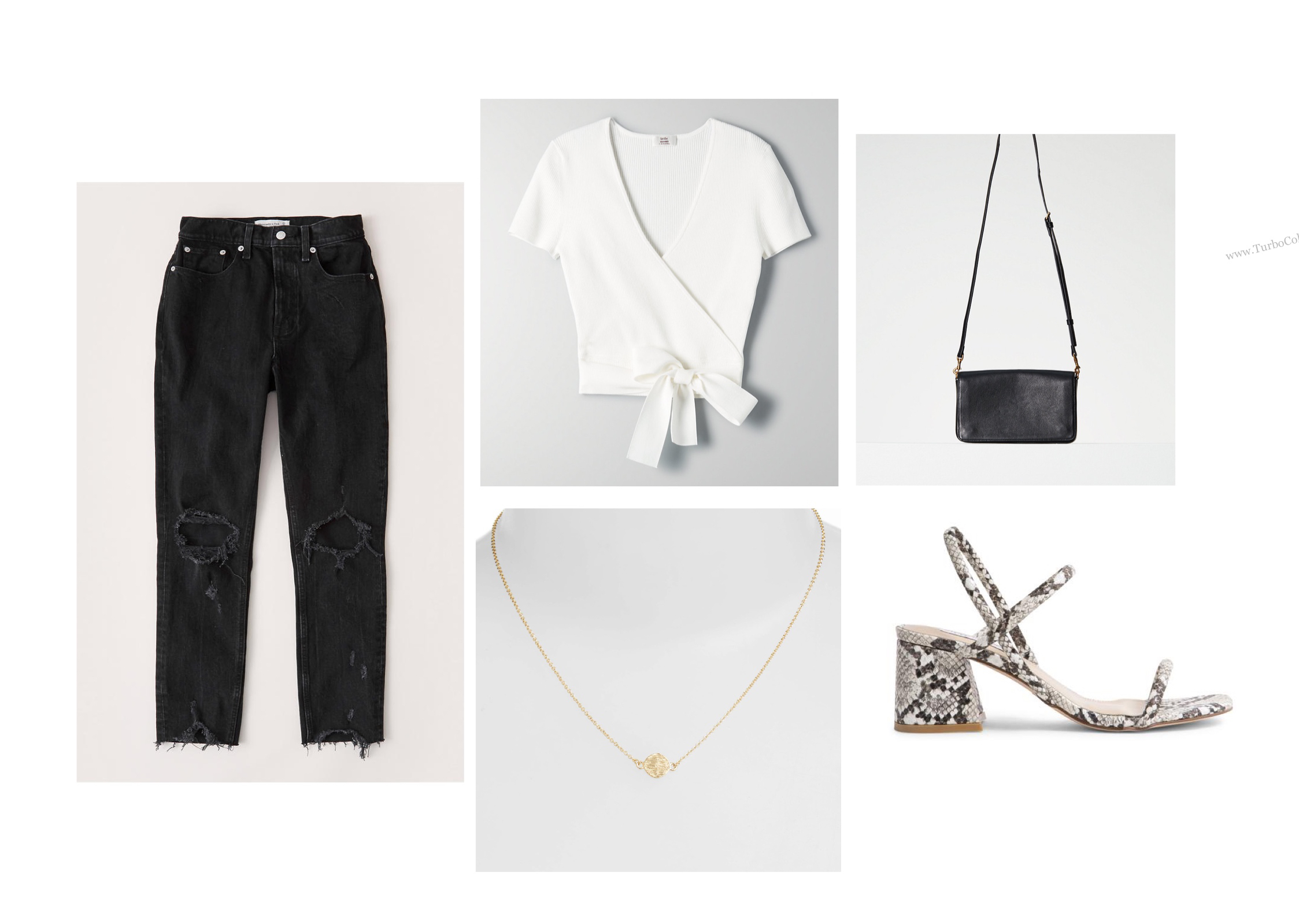 Abbey’s Comments: Laura really captured my personality with this outfit. I love being casual but I always felt like if I were to go out I would look underdressed. This outfit solves that problem but still stays true to who I am but adds in the cuteness, which is just what I needed. The shirt is so cute and simple and the bow adds that extra bit of fanciness that brings the outfit up a notch. I wouldn’t normally pick those shoes out but I’m definitely going to now because they really make the whole look! The bag looks so cute with the shoes and I have a bag just like that! I love gold jewelry and again the shoes and black jeans make it pop and I love it!!