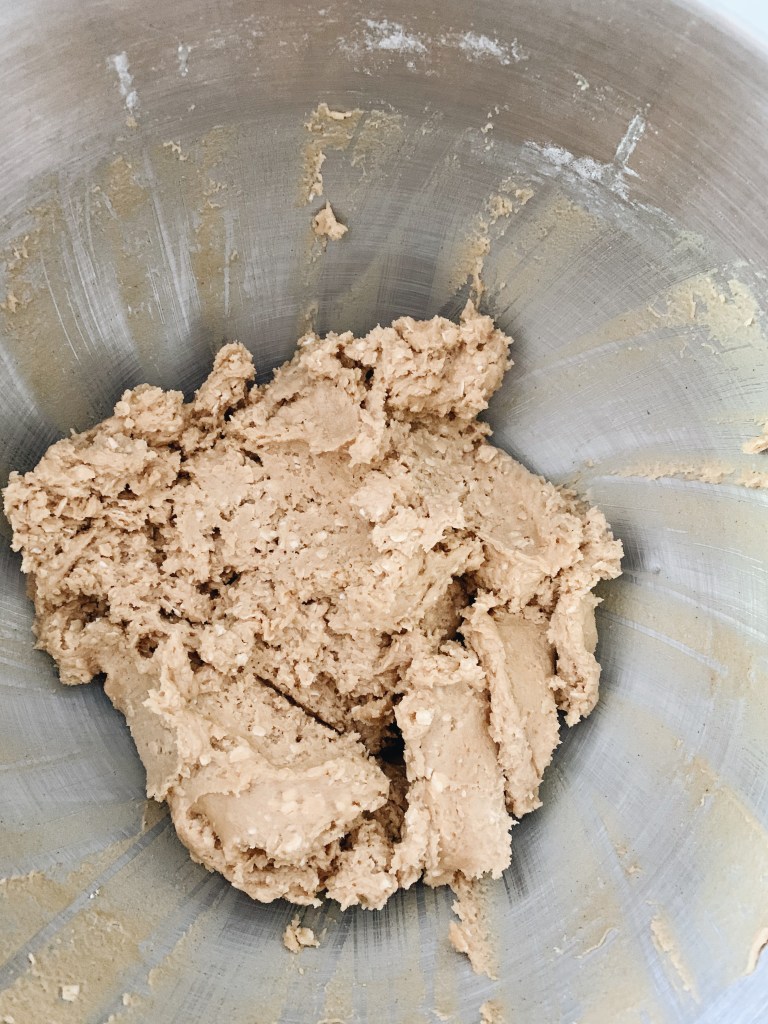 - Mix together the flour, oats, baking soda, baking powder, and salt together in a mixing bowl until combined.