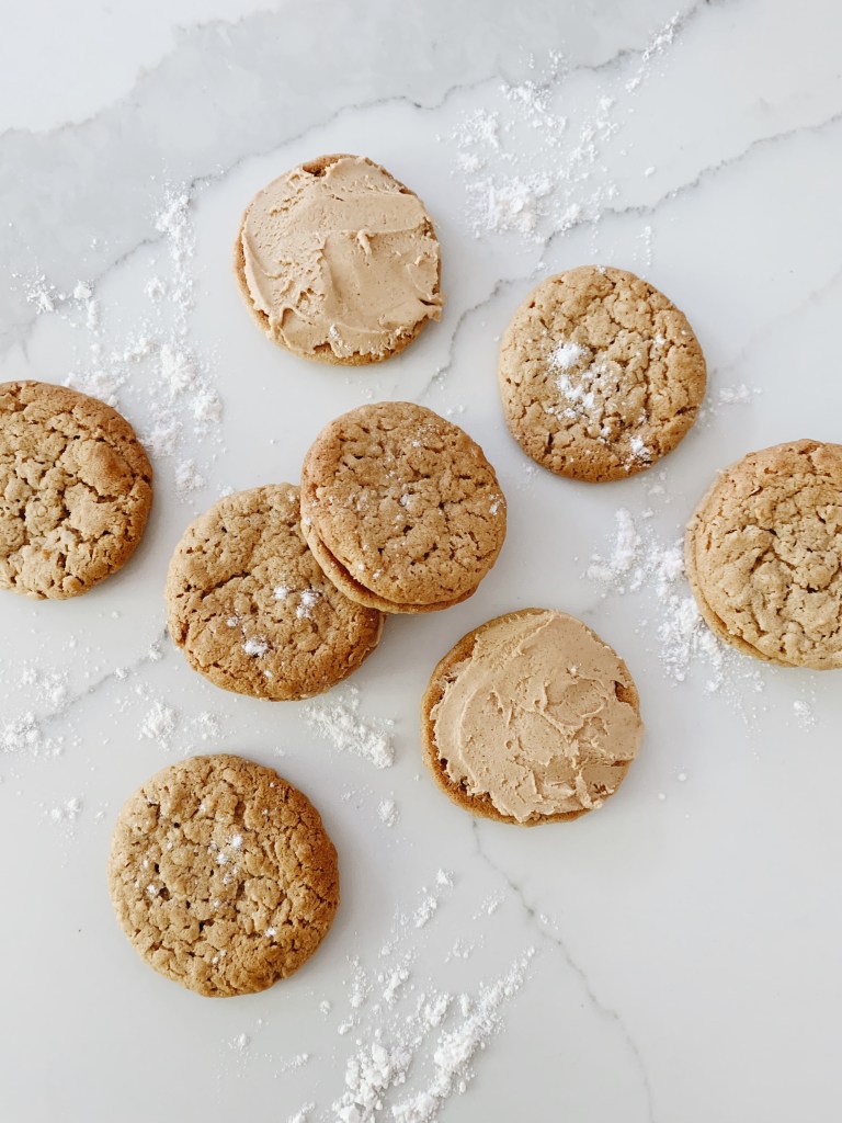 Today I am bringing to you the best peanut butter cookie sandwich recipe! I made these the other day and they were a hit in my house so I knew I had to share it with you all. These cookies are so easy to make and you only need simple ingredients that you may already have in your pantry. If you try these cookies out for yourself send me a picture on instagram @alittletouchofgold, I would love to see how they turn out. Happy baking!