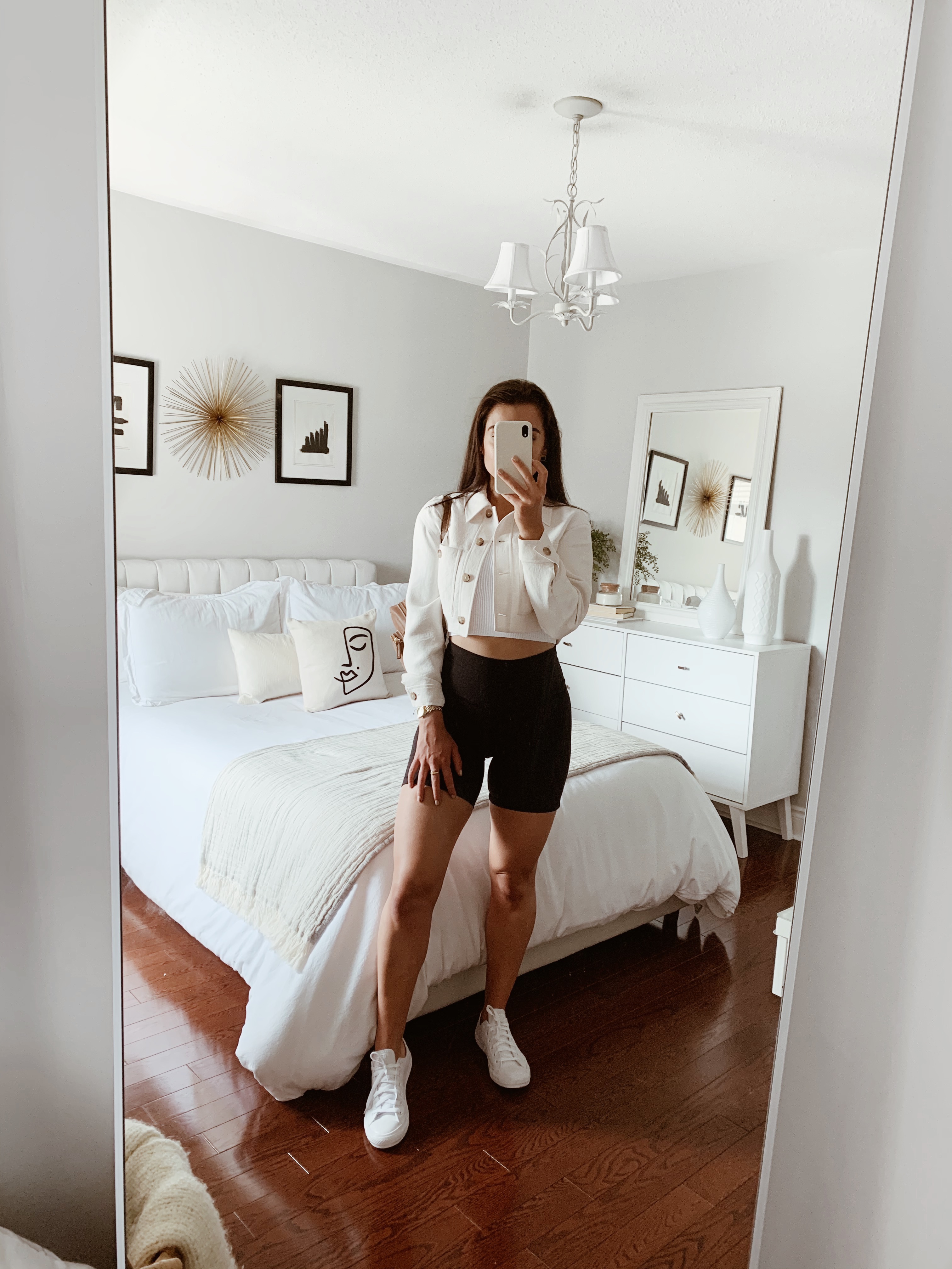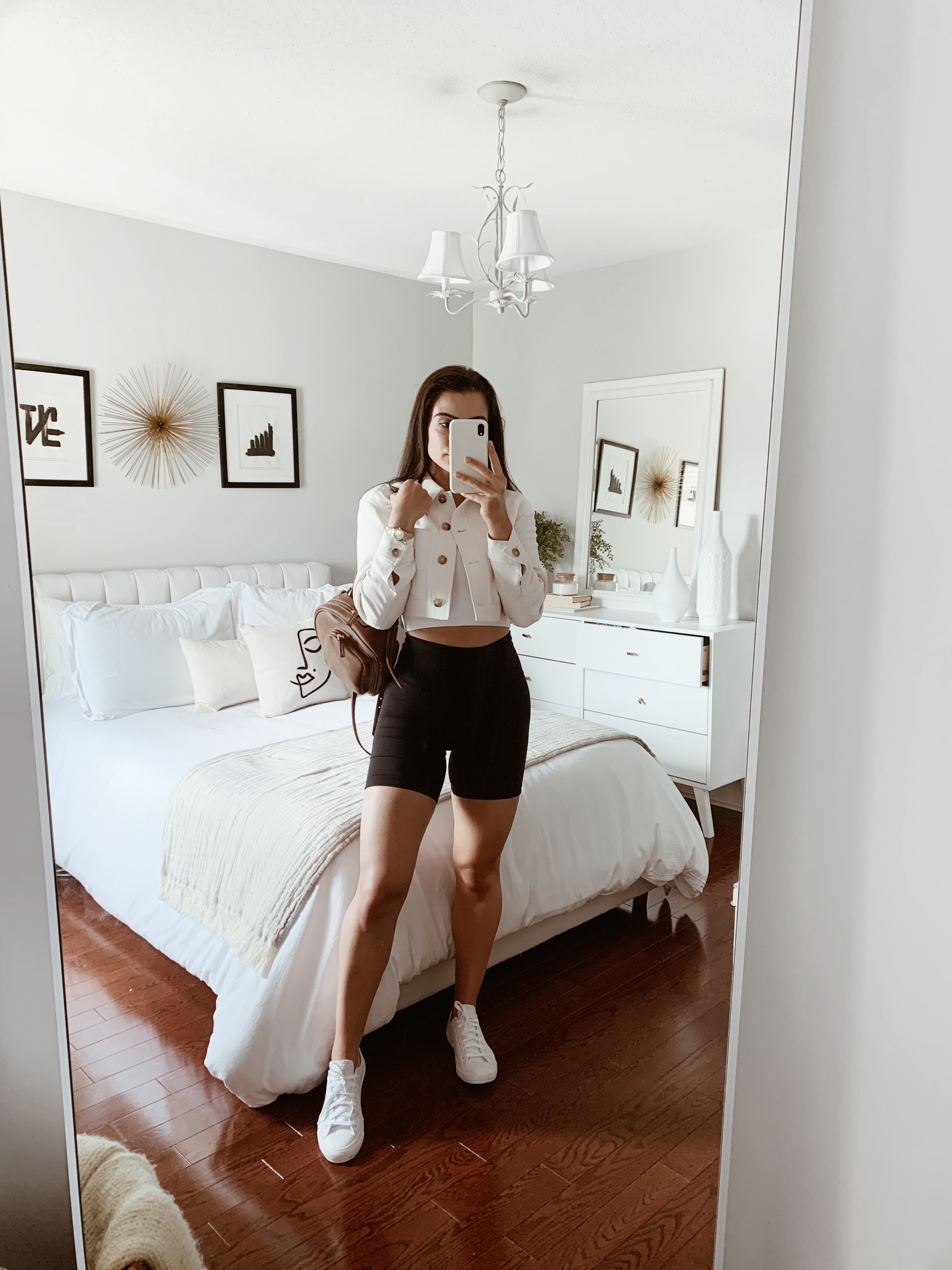 Last but not least I put together this biker short look that I thought was great for a day out downtown, exploring etc. I wanted to show that although an athlesuire look is typically what you would go for when it comes to biker shorts you can also keep it casual in other ways. The statement piece of this look is the jacket, other then that it is just basics. It is so simple to recreate and makes a super cute look.