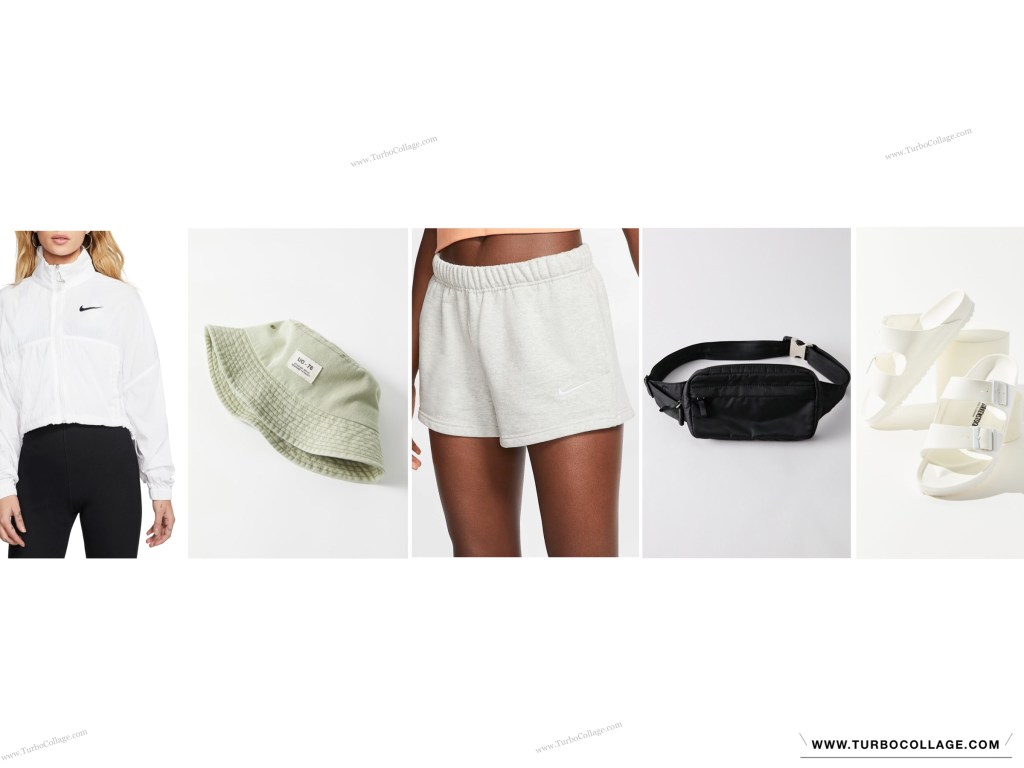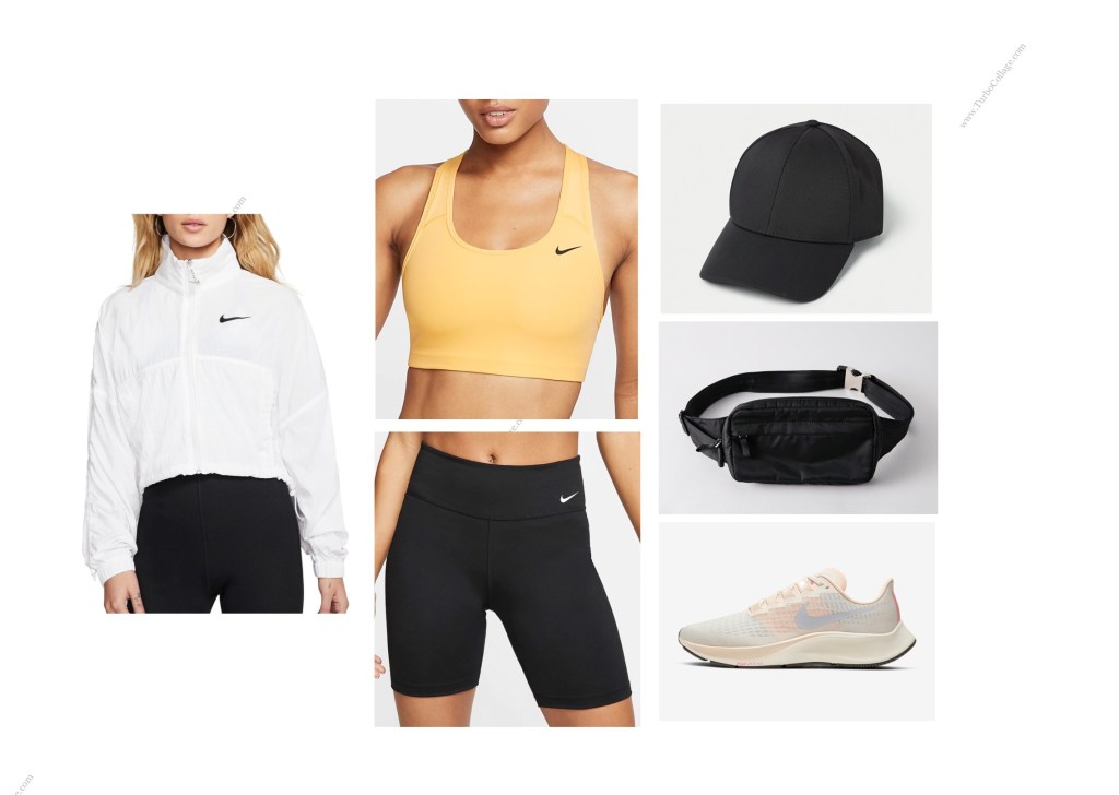 The first look that I put together for Isabel was a hiking/workout look. She is a university runner therefore she spends a lot of time being active. Workout clothes don’t just have to be functional, they can also be super cute. I knew that Nike was her favourite brand of workout wear so I started there when picking out the items. This white windbreaker is so cool and is the perfect thing to wear if it a little cooler outside. I thought this orange sports bra was perfect for summer and complimented the shoes perfectly. I also always see her sporting a belt bag so I knew I had to incorporate that into this look, it not only adds to the athelisure vibe but is also functional for long hikes.