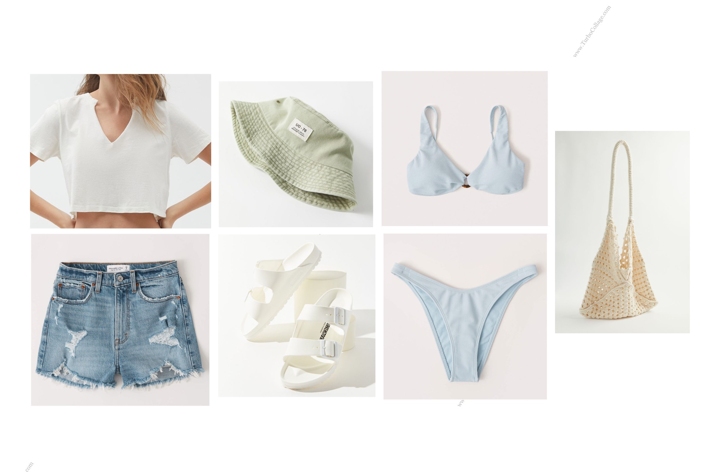 This is my favourite look that I put together for Isabel. There are so many pieces to this outfit that come together to create a super cool and relaxed beach look. I kept it simple with a white tee and jean shorts because you really can’t go wrong and instead had fun with the accessories. I thought this hat was a cool and fun element that Isabel would love. I took a chance with the crochet beach bag but thought it was good to add to stay true to the beach vibe I was going for. You can never go wrong with a pair of Birkinstocks, believe it or not but they are actually on trend and these white pair are a cool take on the classic look.