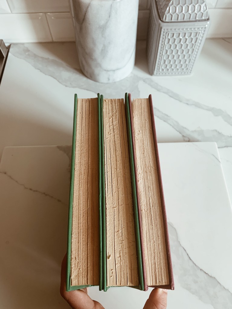 As some of you may know I love interior decor and I am always changing up my room. I love buying pieces but sometimes I think it’s fun to do it yourself. Not only is it cheeper but it adds a personal and unique touch. I love knowing that I created it myself and no one else has the exact piece. Scrolling through Pinterest looking at home decor is one of my favourite pastimes and I kept seeing vintage looking books being used as decor. I went on the hunt for some and quickly realized that they are pretty expensive. After searching I realized that I can easily make them myself using books I had at home, and some tea bags. A lot of you have been asking for more interior content so I wanted to document the process in case you guys wanted to recreate them for yourself. This is the step by step process of how I did it! I hope you enjoy, send pictures to my instagram @alittletouchofgold if you do make them yourself, I would love to see how they turn out. Also follow my Instagram if you want to see more fashion and interior content!