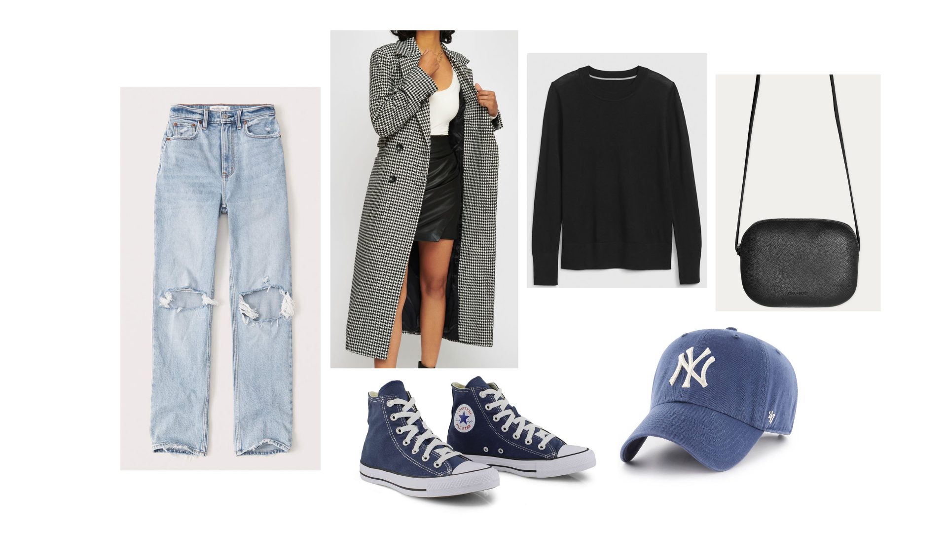 The last look was the easiest to put together. It includes items that many of us most likely already have in our wardrobes. I could not find an exact dupe for her coat so I decided to select one that was the same style but in black and white. I think it still gives the same look and compliments the blue aspects as well.