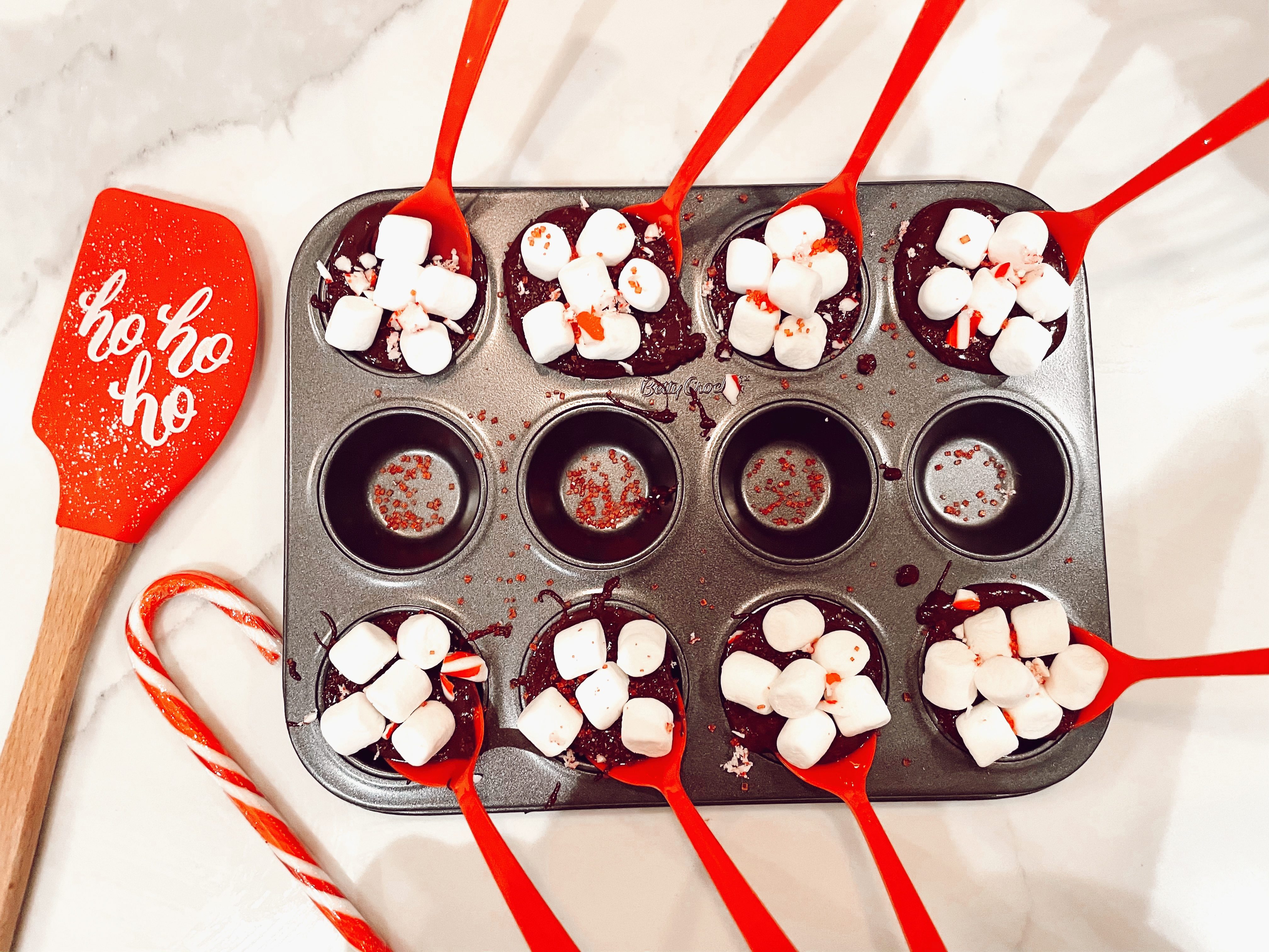 - Place marshmallows on top of each one as well as your sprinkles and crushed candy cane.
