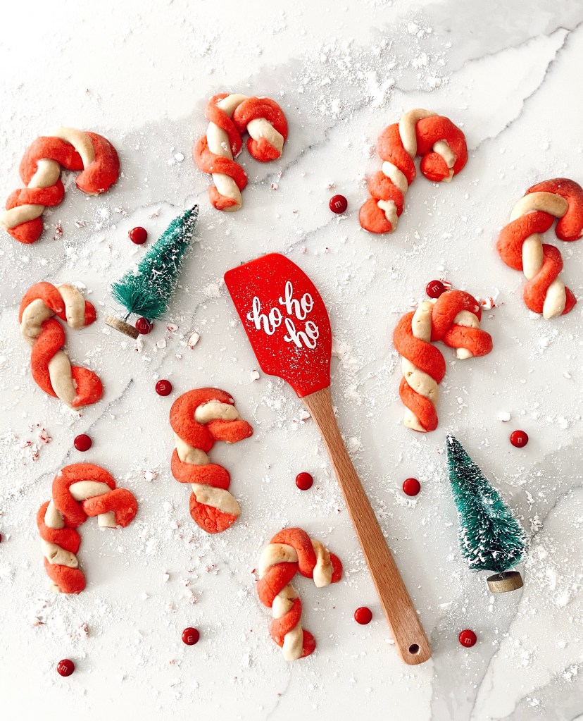You all requested more festive baking recipes so today I bring to you my Candy Cane Cookie recipe. I love baking around Christmas time, and the time finally arrived to make our large batch of Christmas cookies. These candy cane cookies make for an adorable sweet treat that taste just as good as they look. They are easy to make and are a fun activity to do with friends or family as well. Keep reading to find out how to make them.