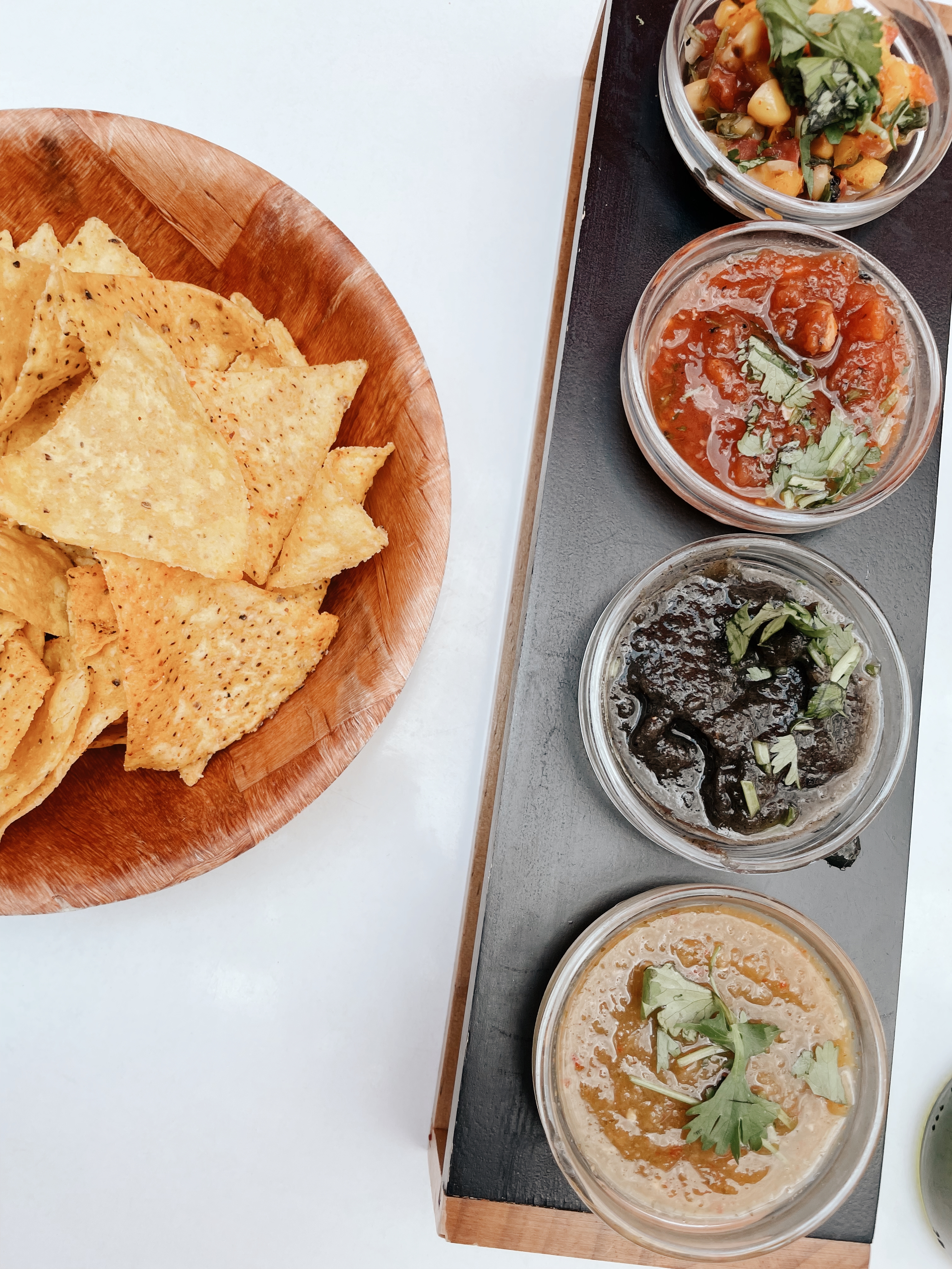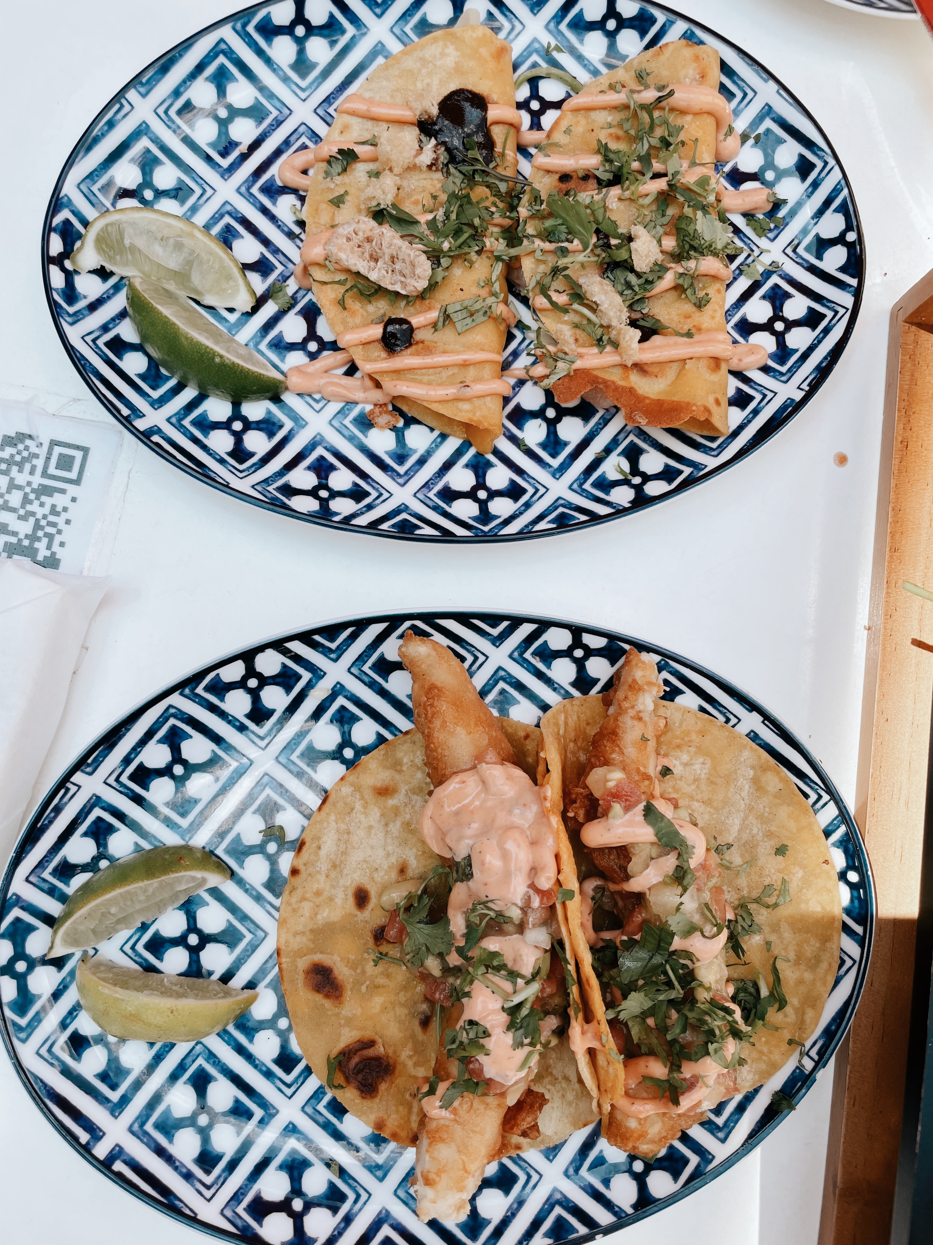 As soon as we got there we were ready to have lunch and since we went on a Thursday there wasn’t a wait for any restaurants. This was such a great surprise as we are so used to having to make reservations or be put on a waitlist. We walked around the downtown core to the various restaurants options. I love how there was so much to choose from in such a short walking disntace from eachother. It made selecting a restaurant so easy. We were craving a fresh margarita and some Mexican food so we landed on a restaurant called “La Reina” on Wyndham Street and we loved it! We immediately ordered the spicy margarita, with some chips and a salsa flight to start, yes I said a salsa flight. I did not know that even existed but it was so delicious. It was so hard choosing from their menu as everything looked and sounded so yummy. For our meal we got the fish tacos which were so good alongside our margarita. Highly recommend going there if your visiting the area. It would make a great date night or girls night spot. There is great music playing, lights and just an overall good vibe.
