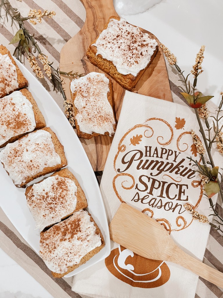 These pumpkin scones could not be more delicious. The perfect dessert for Thanksgiving and the entire fall season. Warmed up with a cup of coffee or tea makes them the best cozy treat! Even better, they are Dairy Free!