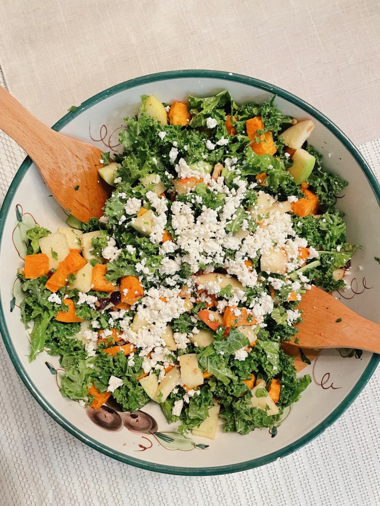 Back again with another fall recipe but this time it’s not a dessert! I am sharing my Fall Harvest Salad with you all today. This is such a great side to rotate into your meals this fall season. It is such a yummy and satisfying salad that incorporates some our favourite flavours of the season.